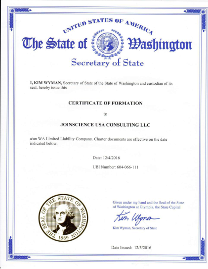 Joinscience USA Consulting LLC will offer investment-connecting service and related consulting service on Chinese medical policies, laws and regulations to overseas medical companies with research projects which intend to move to China. Joinscience USA will arrange visits and provide opportunities of market investigation for the companies in China and the USA, in order to promote resource connection, project landing and company establishment.