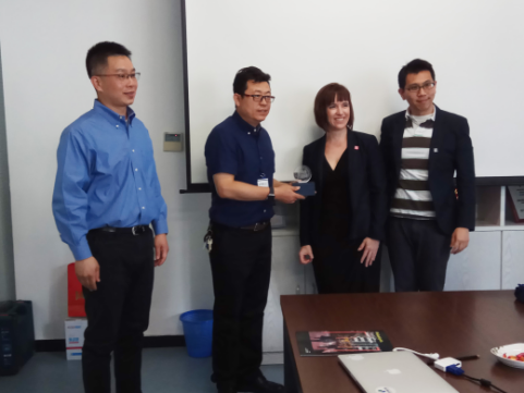 After the meeting, Ms. Lyons presented a souvenir to Joinscience Incubator which symbolized the friendship between Tianjin and Philadelphia. She hoped two parties would have more opportunities for communication and cooperation in the future, in order to help enterprises from China and the USA which intended to expand.